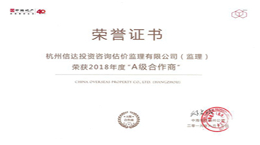 公司榮獲中海地產(chǎn)2018年度A級合作商稱號